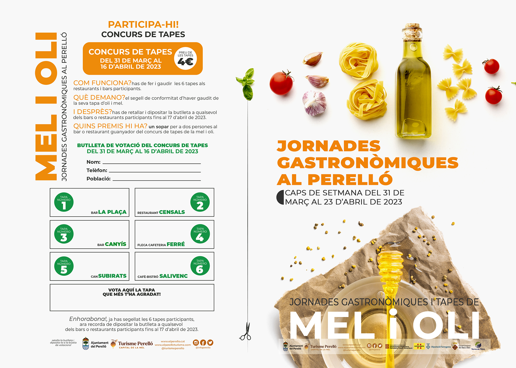 Us presentem les tapes i menús que podreu degustar a partir d'aquest divendres 31 de març a les Jornades Gastronòmiques de la mel i l'oli al Perelló.