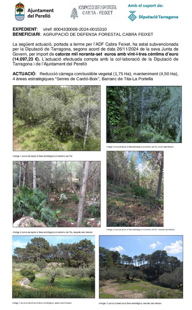 L’any 2022 la Diputació de Tarragona ha concedit a l'Ajuntament del Perelló una subvenció per import de 23.014,79 € a fi de finançar les següents actuacions: